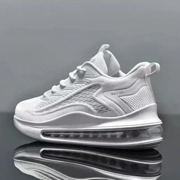 Mens Air Cushion Sneakers | Glow-in-the-Dark Low-Top Sports Shoes in Black, Black Blue, White